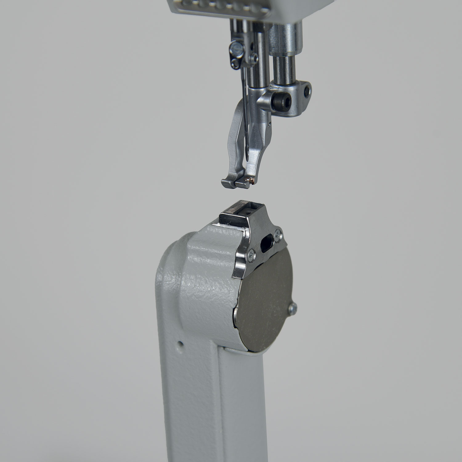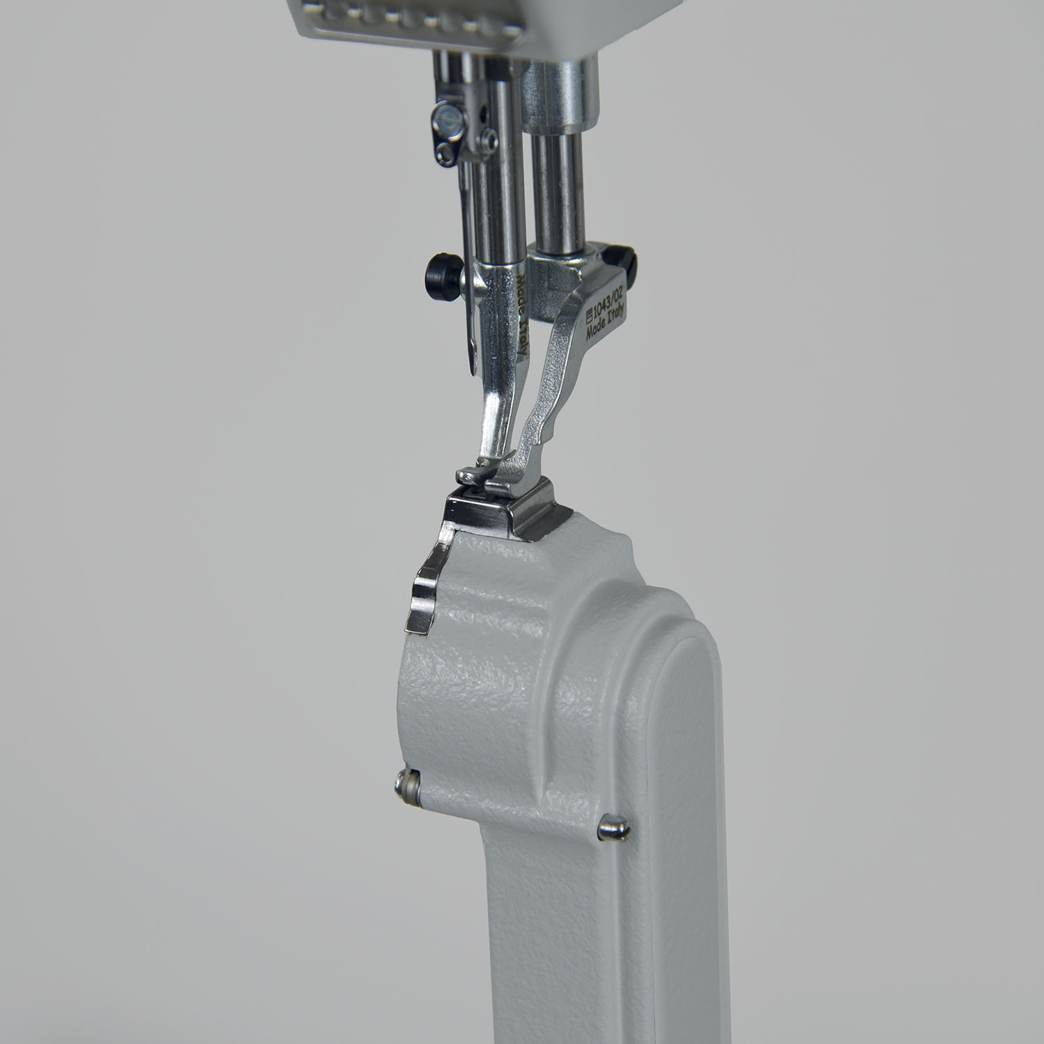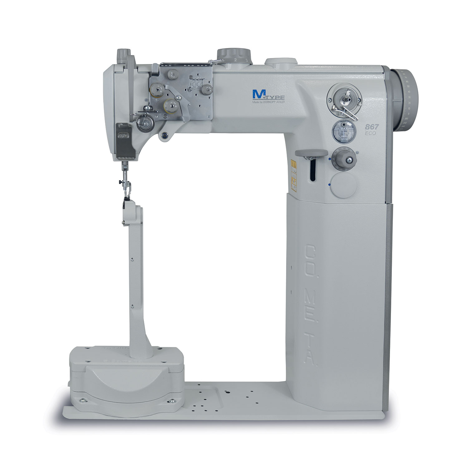Macchina a colonna di ultimissima progettazione, dotata di sistema che permette di girare la colonna a destra e sinistra dell’ago in pochi secondi e poi semplicemente girare ago e piedini tutto in meno di 2 minuti senza l’intervento di un tecnico specializzato. Triplice trasporto e piedini alternanti con altezza fino a 9mm. Crochet CO.ME.TA. con salva ago. Punto annodato, completa di alzapiedino pneumatico. Le dimensioni della colonna e della placca a punta sono state ridotte al minimo, garantendo la cucitura di bordi e angoli molto stretti non realizzabili con altri tipi di macchine oltre ad una distanza di cucitura da bordo placca e ago veramente ridotta. Per la realizzazione della nuova colonna sono stati utilizzati materiali innovativi come l’acciaio K70. Adatta alla cucitura di borse, valigette, porta documenti, portafogli, cover e calzatura in genere.