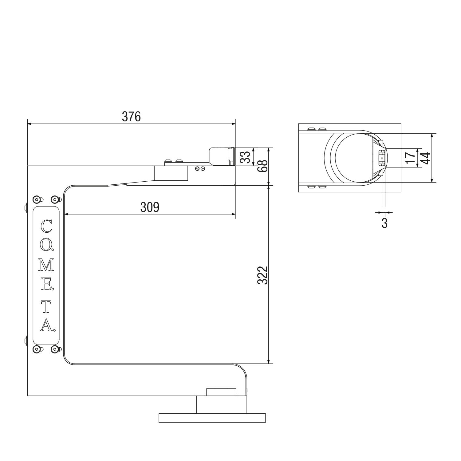 Macchina a braccio rotante a 360°, triplice trasporto.