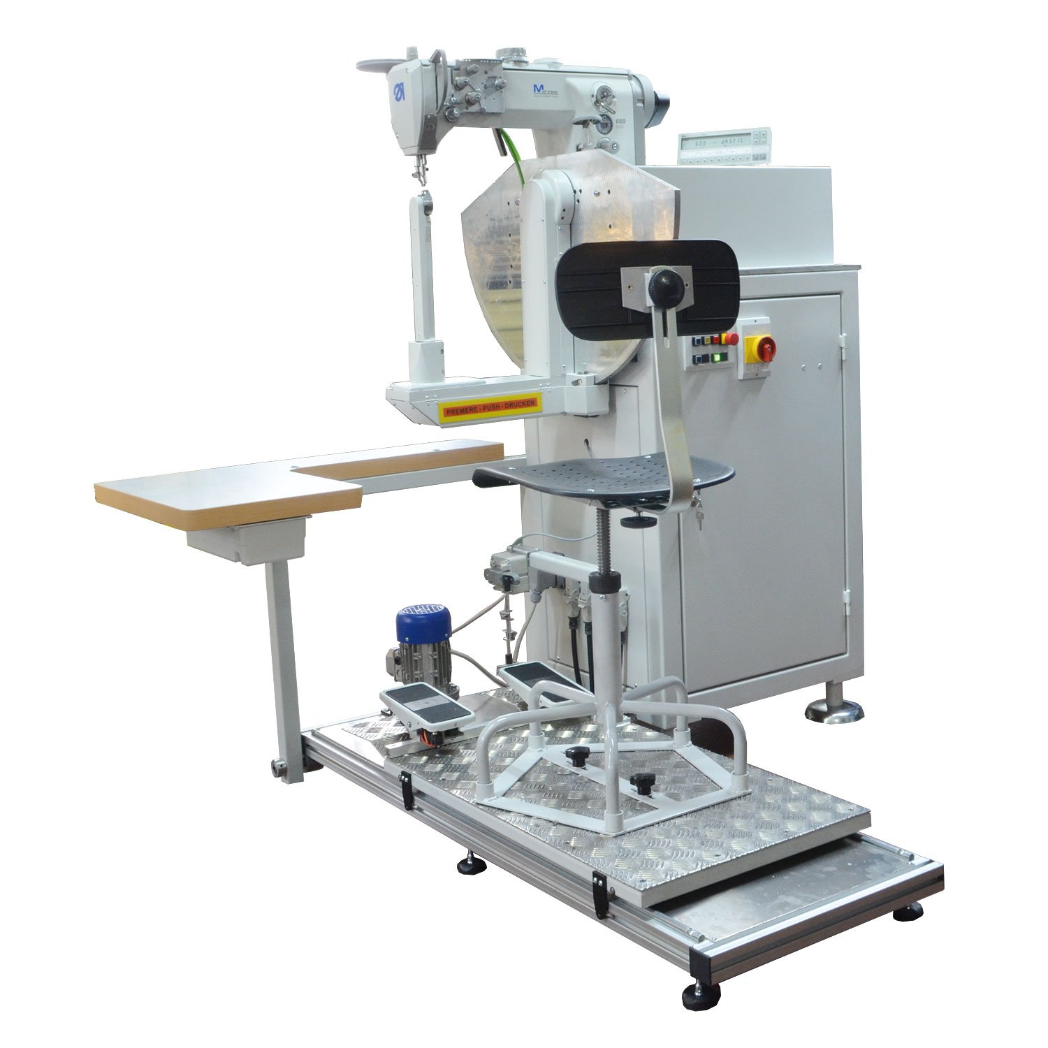 Macchina a braccio oscillante con crochet COMETA con salva ago, duplice trasporto, colonnina XXS che consente di cucire borse di dimensione anche molto ridotte ed angoli molto piccoli. Adatta per la cucitura di borse, borse da viaggio, valigette, porta documenti, stivali e calzature in genere.