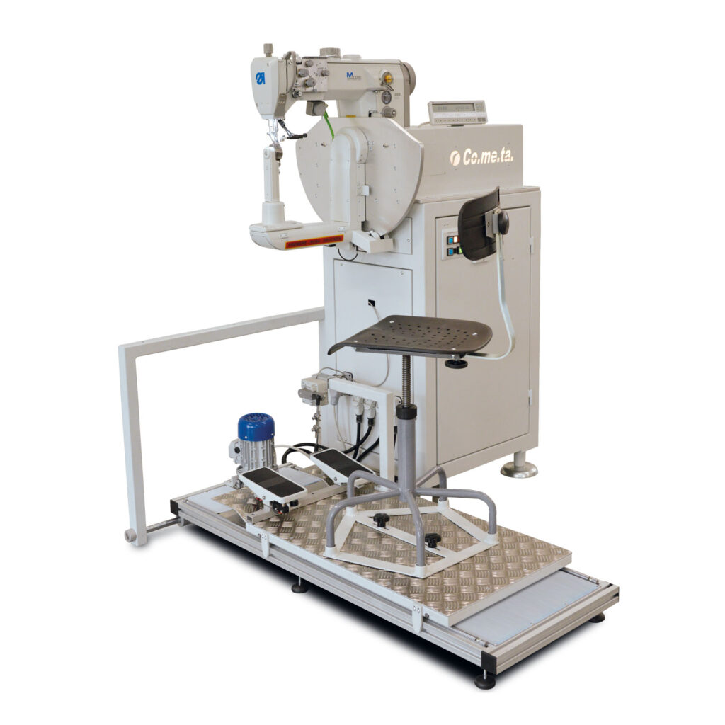Macchina a braccio oscillante con crochet COMETA con salva ago, triplice trasporto, colonnina XXS H270 che consente di cucire borse di dimensioni anche molto ridotte ed angoli molto piccoli.