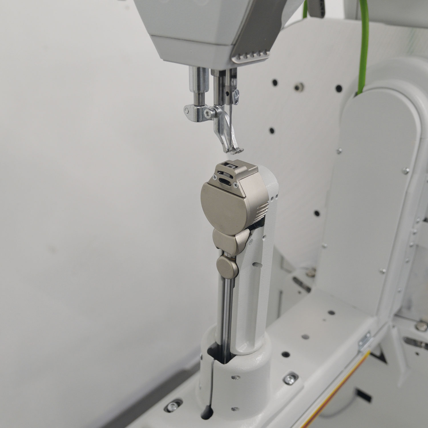 La macchina permette la realizzazione di soffietti e finiture laterali molto vicine al bordo grazie alla placca ago che è stata rialzata e soprattutto alla griffa che consente un trasporto lineare ed assicura una qualità di cucitura sempre perfettamente uniforme.