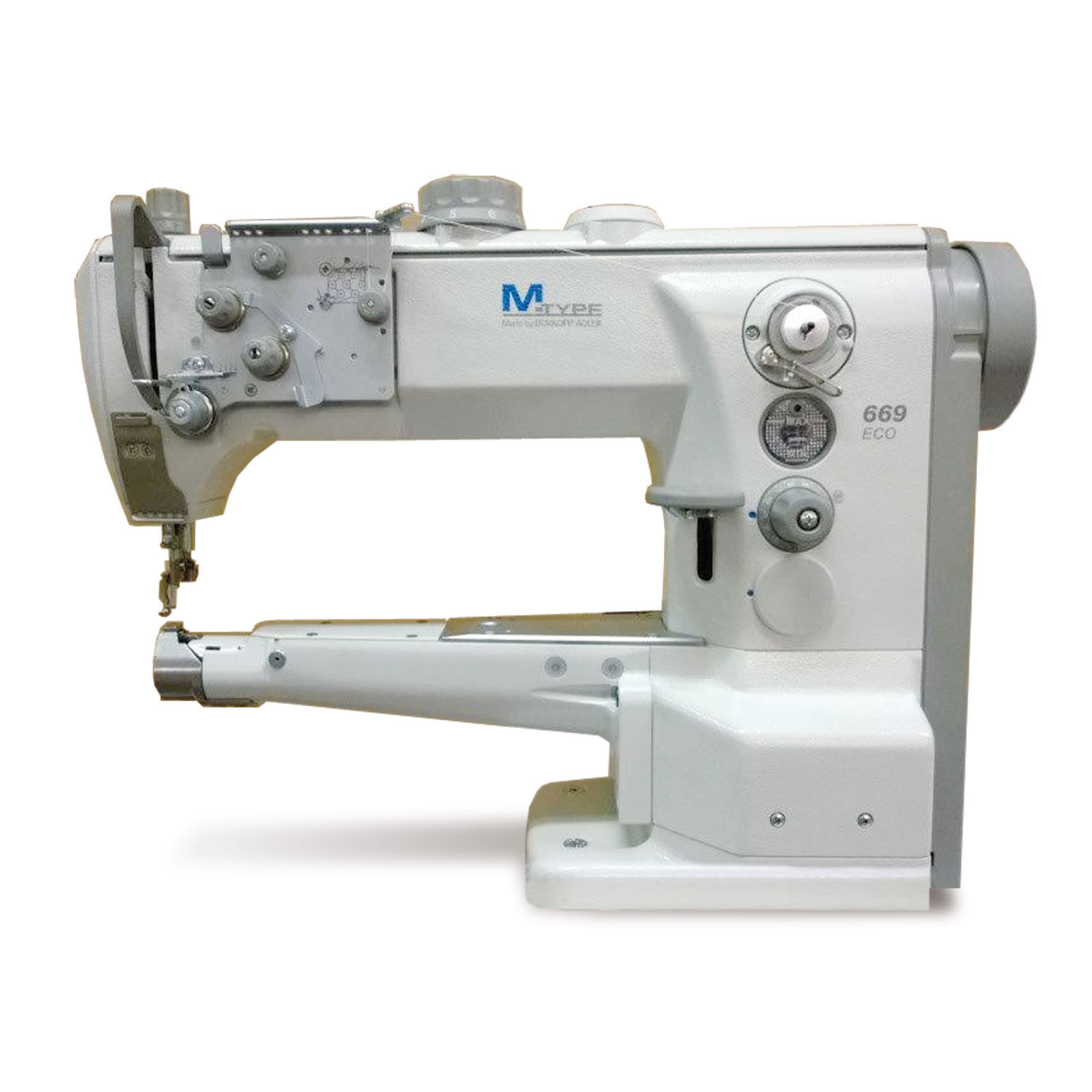 Macchina a braccio speciale, idonea per la cucitura di calzature, abbigliamento e articoli di piccola pelletteria quali borse, portafogli, valigette, ecc.