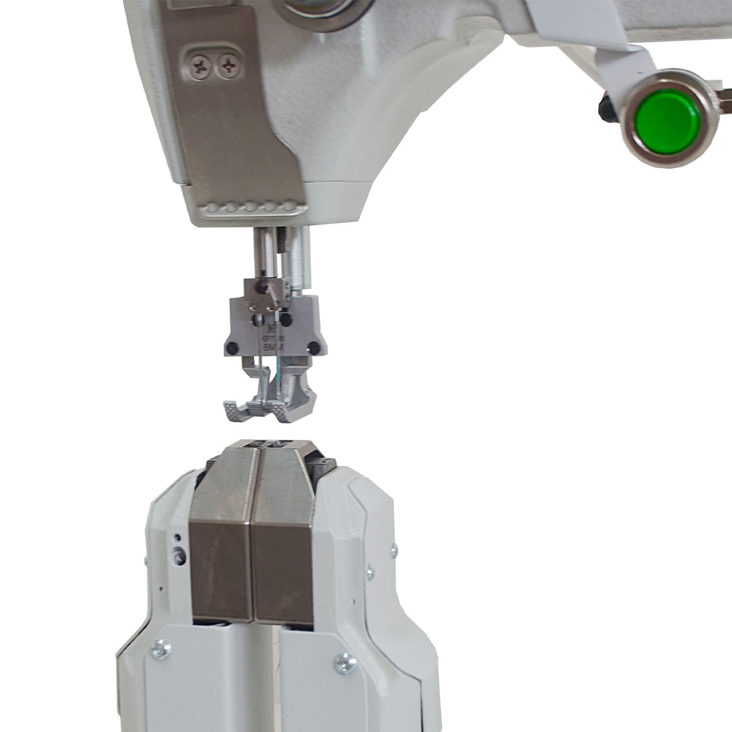 Le dimensioni della colonna e della placca a punta, con crochet CO.ME.TA., sono state ridotte al minimo garantendo la cucitura di bordi e angoli molto stretti non realizzabili con nessun altro tipo di macchina.